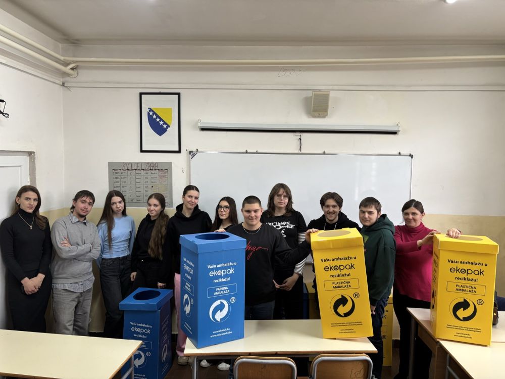 This time, sets of bins for the separate disposal of packaging waste were delivered to the Vogošća Secondary School Center and the Public Institution Technical Secondary School of Graphic Technologies, Multimedia and Design in Ilidža.